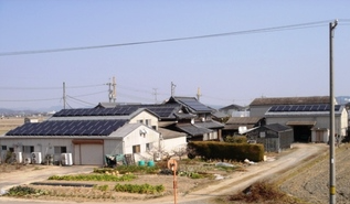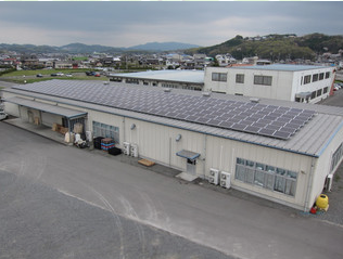 280枚の太陽光パネルが工場西側に設置され発電を開始! (発電量は50kw)