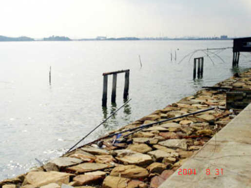 平成16年8月30日午後10:30すぎ、第二の宮崎邸(四つ手網)は、強烈な高波の影響を受け無残にも倒壊し、跡形もなし。さて、どこへいったやら・・・???