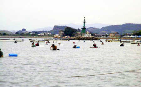 岡山三大河川のひとつ吉井川の下流、九蟠の燈台の南側は、旭川との合流地点で拡大な砂場があり、アサリの宝庫です。蛤は、放流されたものです。